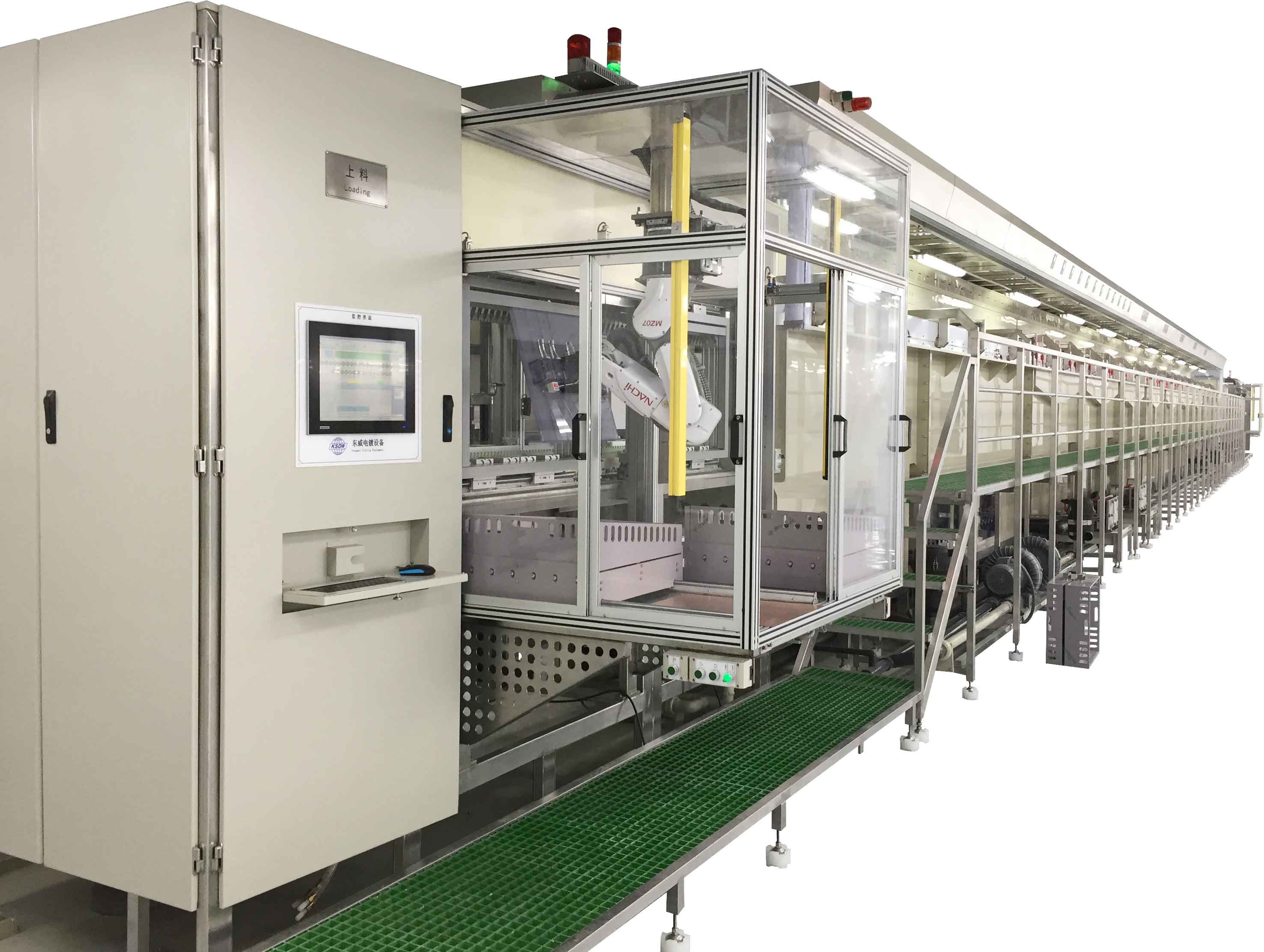柔性板片对片垂直连续电镀设备主要用于柔性板PCB电镀领域,实现片式柔性板的自动上下料生产,穿戴设备、智能家电、通讯设备等。