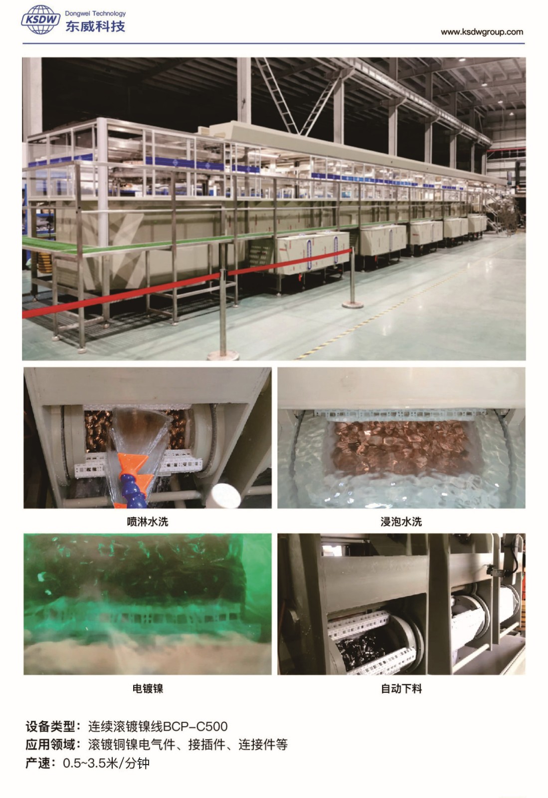 国际首创的五金连续电镀线BCP,实现了电镀设备的自动化、清洁化、智能化生产,提升了产品品质的可靠性,推动了行业绿色发展,广泛应用于电子、半导体、汽车部件、稀土永磁、航天航空等领域,在镀锌、镀铜、镀镍、镀锡、镀金、镀银等镀种方面帮助终端客户提产增效。