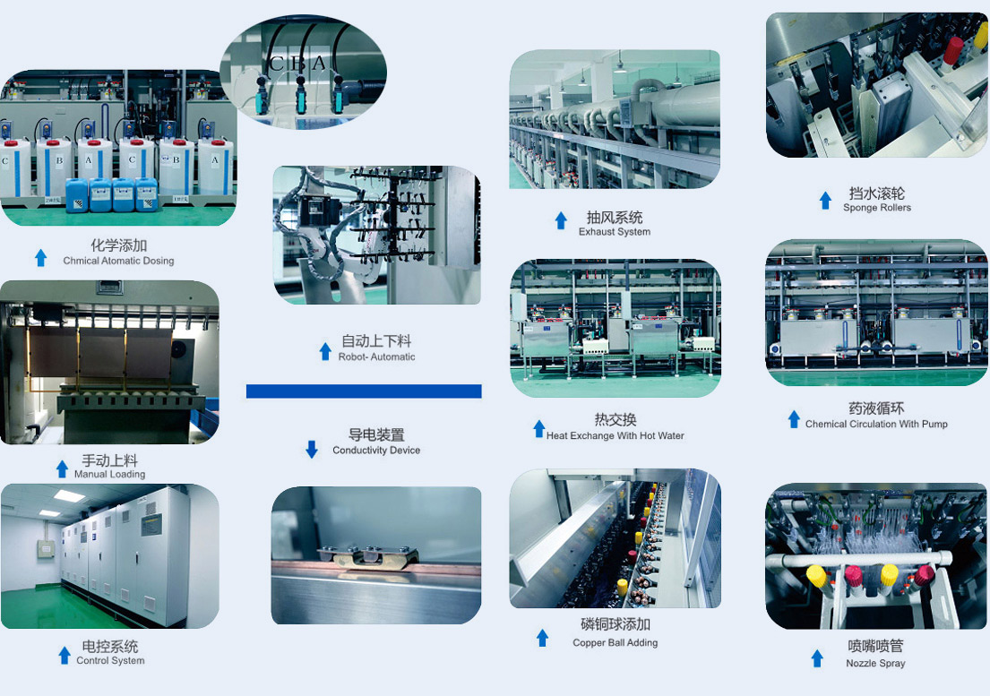 柔性板片对片垂直连续电镀设备主要用于柔性板PCB电镀领域,实现片式柔性板的自动上下料生产,穿戴设备、智能家电、通讯设备等。